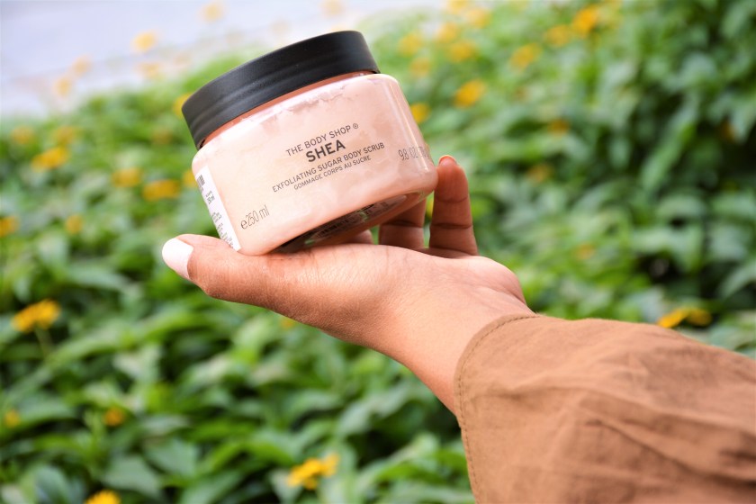 Dry and flaky skin is a common skin problem in the Winter time.A good scrub is important for healthy beautiful skin in winter as exfoliation is the key to get back your hydrated glowing skin.Today I am sharing The Body Shop Shea Body Scrub that not only exfoliate but it also moisturizes your dry winter skin.It helps to remove dead skin cells and provides hydration to skin.